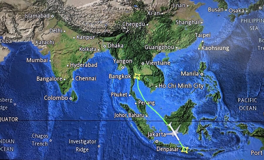 Лететь до Бангкока из Денпасара 5 часов, в полете вас прилично накормят и предложат алкоголь.