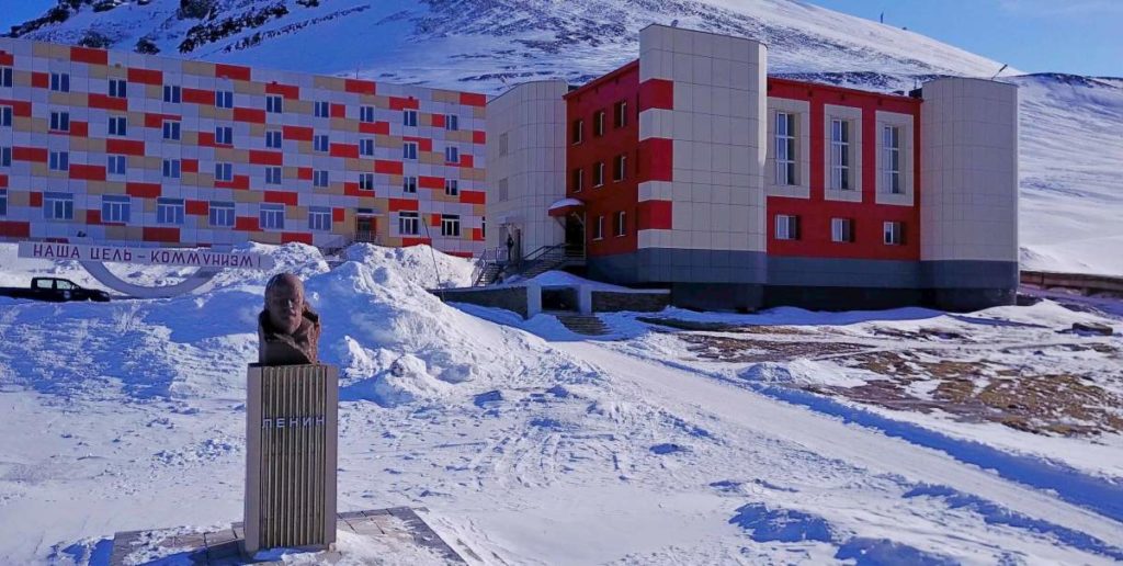 Езда на снегоходах стала почти второй натурой, когда на следующий день мы прибыли в Баренцбург, одинокий форпост советской эпохи, занимающийся добычей угля, насчитывающий 350 жителей. А основная достопримечательность это гордый бюст Ленина. Электростанция и ее территория в поселке выглядят совсем чужеродно, учитывая нетронутые окрестности Баренцбурга.